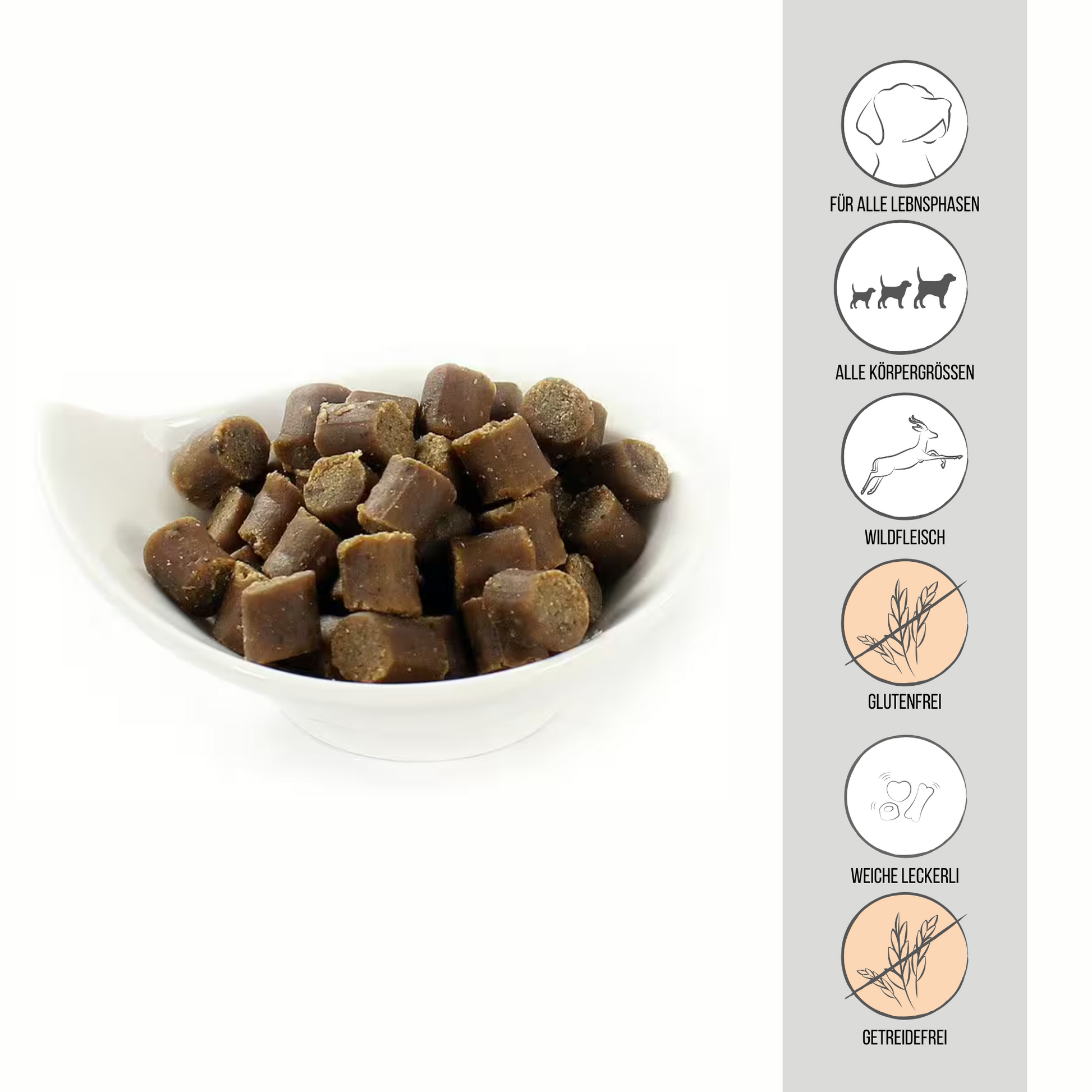 Vom Chihuahua bis zum Dogge – dieses Produkt ist für alle Rassen und Größen geeignet. Weiche Leckerli Je weicher das Leckerli – umso einfacher kann es geschluckt werden. Das ist vor allem im Training ein wichtiger Faktor. Um perfekt getimt zu werden, sollte die Belohnung möglichst klein und weich sein, um leicht und schnell geschluckt werden zu können. Aber auch ältere und junge Hunde im Zahnwechsel profitieren von einer weichen Konsistenz, da oft die Kraft zum Kauen härterer Produkte fehlt.