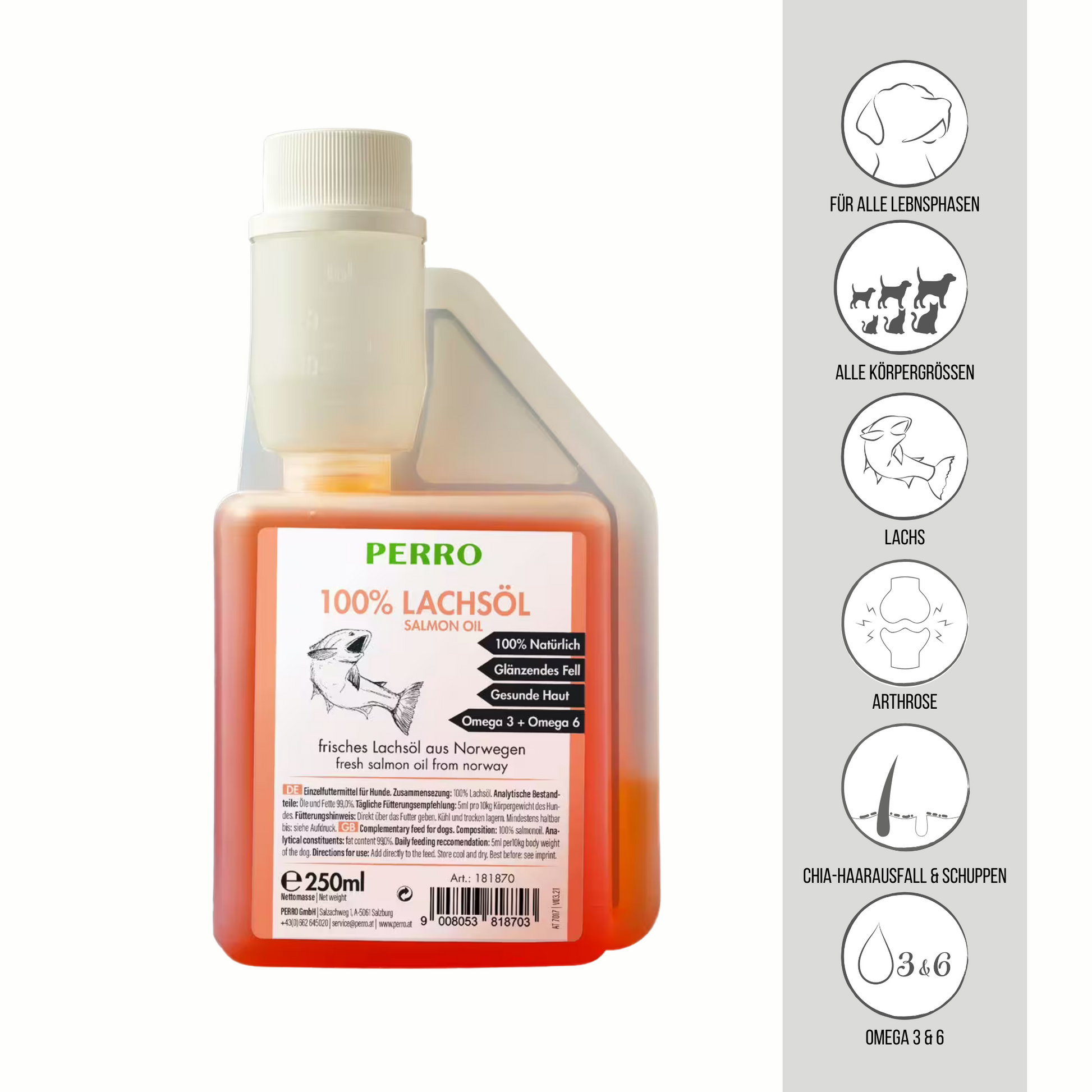PERRO Premium Lachsöl für Hunde und Katzen – Natürliche Unterstützung für Haut, Fell & Immunsystem