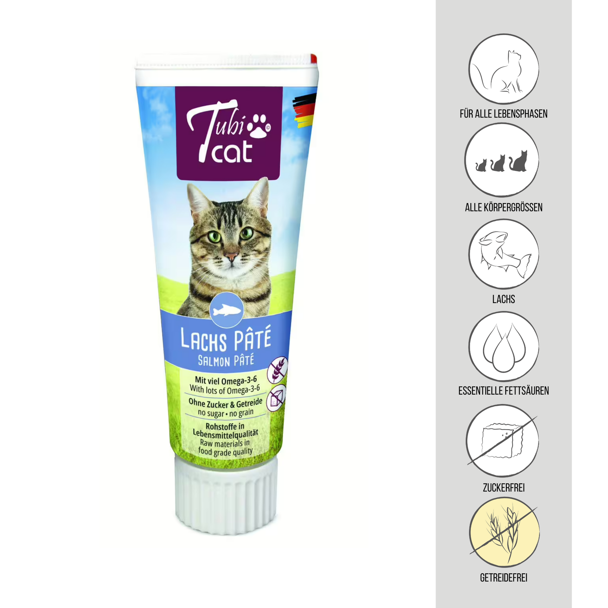 Die TubiCat Lachscreme für Hunde wird mit frischem Lachs und ohne Geschmacks-, Konservierungs- oder Farbstoffe zubereitet. Der leckere Duft, die appetitliche Optik und alles voran der verführende Geschmack machen TubiCat Lachscreme zu einer beliebten Belohnung für Katzen. Will man seinem vierbeinigen Freund Medikamente verabreichen , egal ob Tabletten oder Tropfen, eignet sich die Lachscreme ideal dafür. Gemeinsam mit dem geliebten Leckerli werden die Tabletten selbst von wählerischen Katzen meist ohne Mürren geschluckt. Die TubiCat Lachscreme schmeckt so herzhaft lecker, dass sie sich hervorragend als Belohnung eignet, sei es beim Spiel oder einfach zwischendurch als besonders Delikatesse.